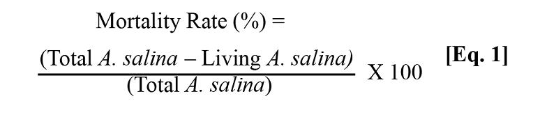 - Zhang, Y., Mu, J., Han, J., & Gu, X. (2012). An improved brine shrimp larvae lethality microwell test method. Toxicology mechanisms and methods, 22(1), 23–30. https://doi.org/10.3109/15376516.2011.583297.