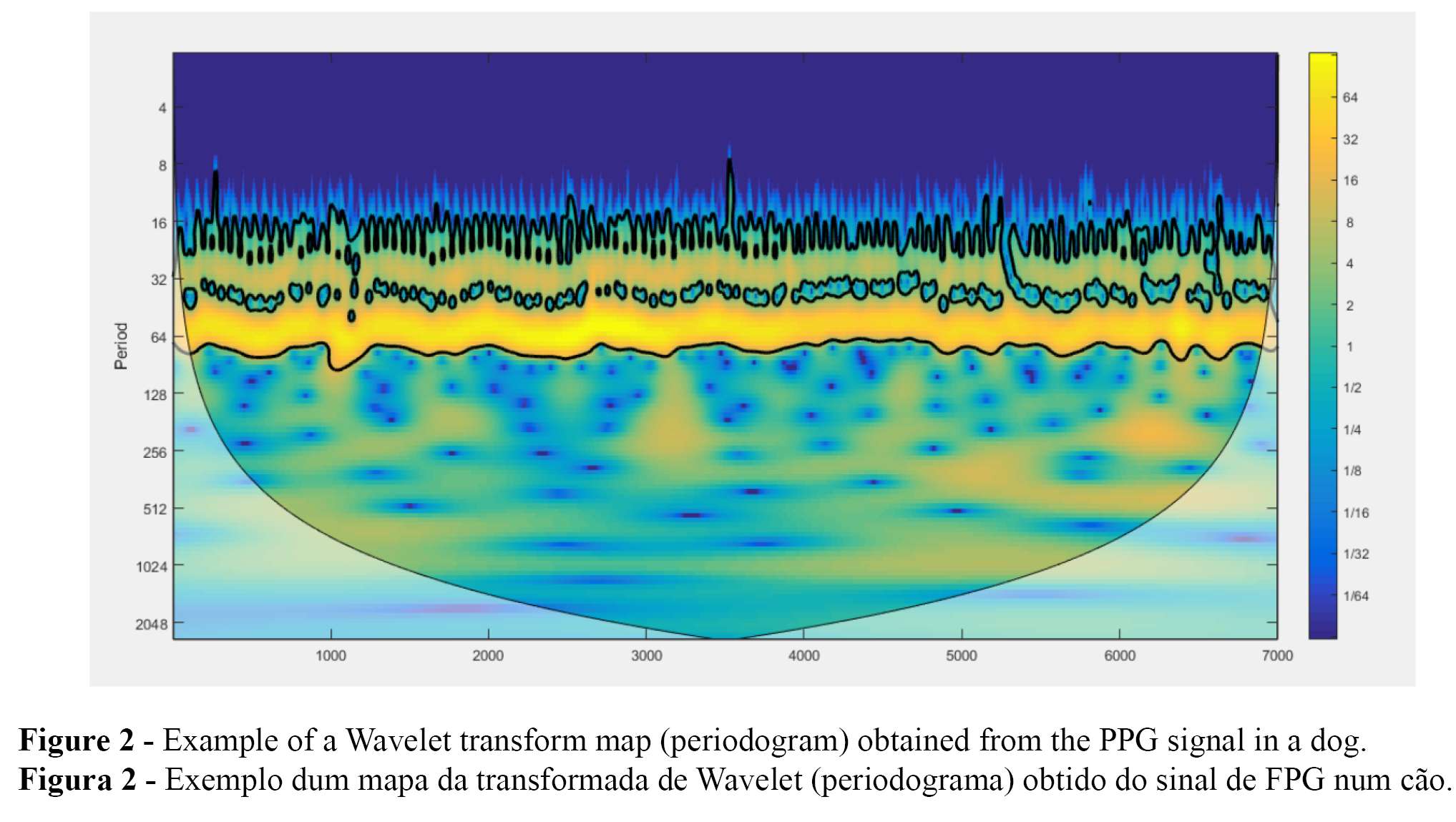 After the administration of the sedative medication, a decrease in the values for cardiac and respiratory activity and a decrease in the mean frequency of each wave were clear within the PPG signal. In medical practice, the utility of PPG in determining cardiac and respiratory rates are widely recognized (7,10). In veterinary medicine, as far as our current knowledge goes, only one study has associated PPG with respiratory rate (11). Differences found regarding respiratory activity before and after administration of medication were not statistically significant, although a slight decrease in maximum respiratory activity and a (larger) decrease in minimum respiratory activity were detected. However, the purpose of this exploratory study was to test the applicability of this technology in the present setting, and in our opinion this goal was achieved.