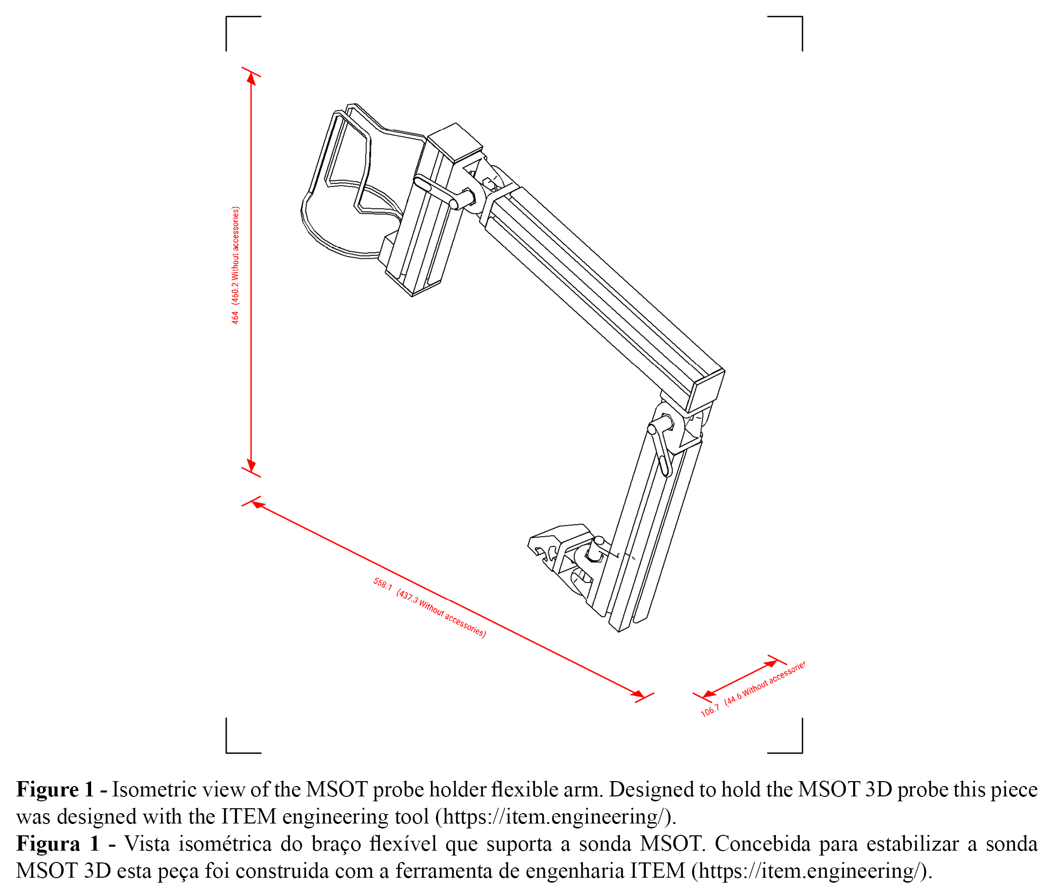 The ventral aspect of a randomly chosen forearm, with body hair chemically removed immediately prior to analysis, was marked for probe application (4,20). The MSOT 3D probe was then applied and focused in a fixed orientation. A thin layer of gel for sonography was applied in the MSOT 3D cup before contact with the skin to improve image acquisition conditions. The MSOT 3D cup was locked in position with a self-assembled arm (ITEM – Engineering,Solingen ,Germany)(Figure 1).