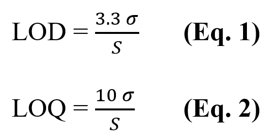 where σ is the standard deviation of the absorbance readings of the blank and S is the slope of the calibration curve.